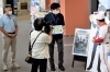 白井市役所本庁舎から収録が始まりました。アニメ「群青のファンファーレ」有村優君のパネル前で撮影です。アニメの聖地巡礼マップの紹介もありました。