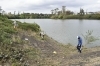 道路フェンスに近いブロックの水面近くは草木を多く残して、安全のためブロックにオオハクチョウが登れないように環境改善しています。