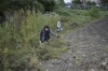 入口付近は、乾燥させてかさを減らすため、白井市環境課職員の方が事前に雑草を刈られていました。また、池の周囲の雑草は千葉県が刈っていかれたそうです。その雑草をトラックに載せます。