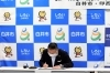 白井市笠井市長と印西警察署戸田署長が、揃って協定書にサインされました。※撮影時のみマスクを外して頂きました。