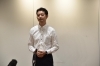 印西警察署白井分庁舎の視察の後、笠井市長と意見交換を行い、その後、記者の取材に応じてくれました。