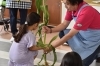1年生の子ども達は一本いっぽん丁寧に皮とヒゲを取っていました。