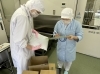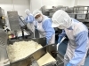 出来上がった給食を、給食センター所長と栄養士などが検食を行なっています。