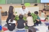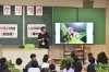 今回はさやとり体験のために、給食センター栄養士の先生の他に生産者の中村さんとやおぱぁくの北川店長、そして学生ボランティア(未来の栄養教諭)として淑徳大学のSさんとKさんの挨拶から始まりました。