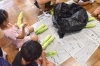 1年生の子ども達は一本いっぽん丁寧に皮とヒゲを取っていました。