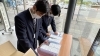 市役所東庁舎の来庁者には様々な方が大勢いるのですが、期日前投票来場者なのか、そうでないのかを自然に判断して、スッと近づき声がけする姿には驚くばかりです。