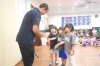子ども達とハイタッチする藤江選手。子ども達のヒ-ローです。