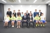 第41回全国小学生陸上競技交流大会に出場した、白井市在住の選手と保護者の皆さんが笠井市長と井上教育長を表敬訪問しました。
