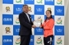 白井市役所本庁舎玄関に来られました!安藤美希子選手です!全世界の注目を集めたオリンピック選手ですよ!