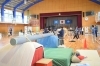 大きな塩ビパイプにまたがり、用意されている武器をえらんでチャンバラごっこ。白熱した試合もありました。