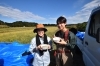 田園に残らないよう、ブルーシートに広げビニール袋へ詰めていきます。