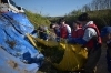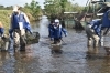 モッコに駆除したナガエツルノゲイトウを岸辺に人力であげます。