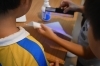 災害時の電話の掛け方。紙にはクイズが書かれているんです。