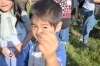 5月に田植えをした稲が水害を乗り越えたくましく、そして大きく育っていました。実り多き秋の訪れと自然に触れながら、また秋というには少し暑いこの日ご家族で参加された皆さんは、バッタや水生昆虫などのふれあい晴天の広場を走り回りました。