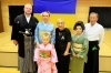 オレクサンドル・セメニューク公使参事官ご家族、箏遊会代表赤木静香さん(中央)、刀剣居合道の志塚忠夫さん(右)、日本舞踊の瀬川るり子さん。