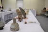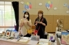 皆さんが作った手芸品を紹介されています。手の込んだ作品一つ一つを手に取ってご覧になっています。