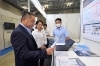 笠井市長は、企業の技術・サービスを紹介するパネル一枚一枚、隅々まで見学していました。