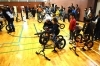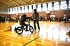 白井市立白井第二小学校体育館に結集した、白井っ子たちと4名のBMXプロライダーのみなさんです。