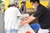 ピンポン玉の数だけ卵をもらえるとあって、皆さん大きく手を広げ、上手にすくいます♪