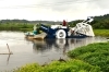 白いカゴの様な箇所で、ナガエツルノゲイトウを駆除するパワフルな水草刈取船を始めて見ました。