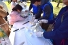 テント裏がチョコバナナキッチンになり、分業をして手作りチョコバナナ作りをしていました。