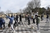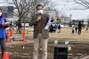 笠井市長:寒風に 向かう子どもら たこあげに コロナ収束 願いを込めて
