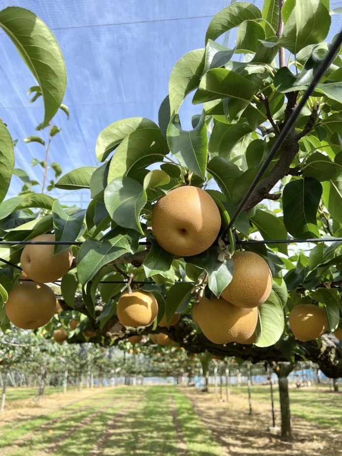 4代目の一至さんは20代中盤で脱サラし、市内の梨農家さんと梨の生育について情報交換しながら熱心に梨づくりの研鑽を続け、とても立派に継承されています。