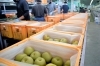 品質・大きさなどの鋭い目利きの関門を通過した梨はベルトコンベアに乗せられます。その行く先は・・・、