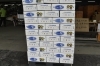 選別され段ボールに箱詰めされた梨は、出荷場所へ運ばれ積まれていきます。出荷されるしろいの梨には「秀・優・良」と等級があるんです。