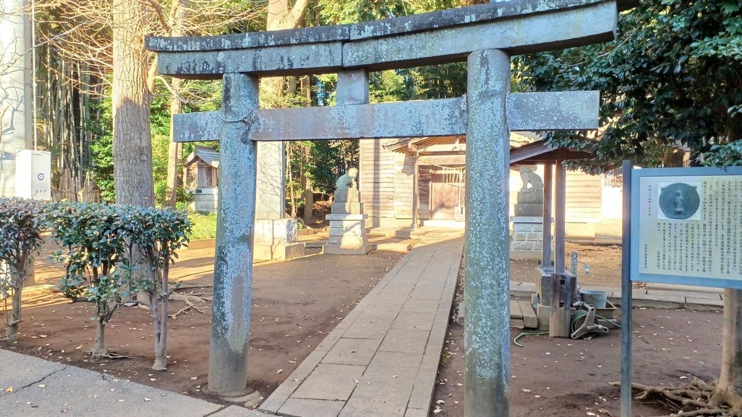 白井の鳥見神社は、木下街道沿いの「さつまや」の裏手側にあります。市指定文化財になっている「石造鳥居」は正徳3年(1713年)に建てられたもので、市内の石造鳥居の中で最も古いものとなっています。