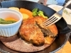 元シェフであるスタッフがこだわった牛と豚(7:3)の割合で作ったハンバーグ。これでもか!と練ったたねは食べ応えがあり、ナイフで切るとジュワっと、口に入れるとフワッと至福の時間の始まりです。