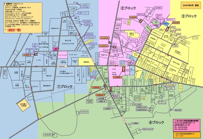 白井工業団地は二小学区にあります。工業団地の企業からなる白井工業団地協議会は、普段から社会科の学習などで協力をするなど二小とは縁の深い存在です。